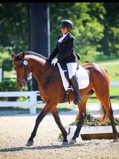 Mo-Mo competed in the CDCTA dressage series in 2021 and successfully completed all of his introductory level tests, and training level tests, scoring in the mid to upper 60's. His most notable performance was on a day that we had scheduled 2 events. The morning was spent working cattle at a Ranch Roping Clinic and the afternoon, after we changed gear, was dedicated to a Dressage show where he performed his dressage test. We were thrilled to find out he received the high point score of the entire show with a score in the mid 70's, also winning his class.